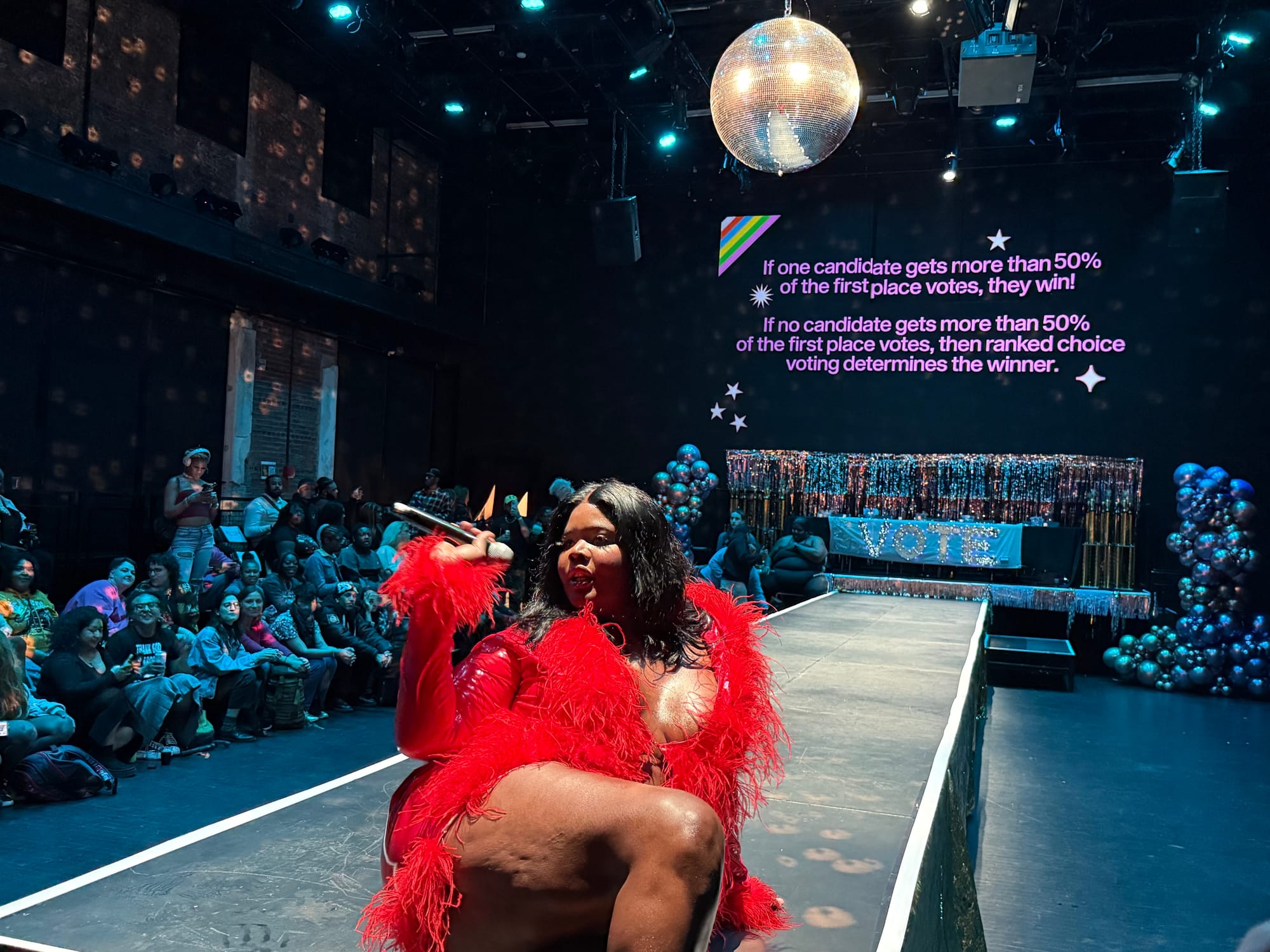 As ballroom star and activist Gia Love (of the House of Juicy Couture and House of Allure) strutted and sashayed across the stage at Performance Space New York last night, she had a simple request for the audience: Love wanted people to start taking New York City elections seriously, and ask for more than just performative gestures toward the trans community.