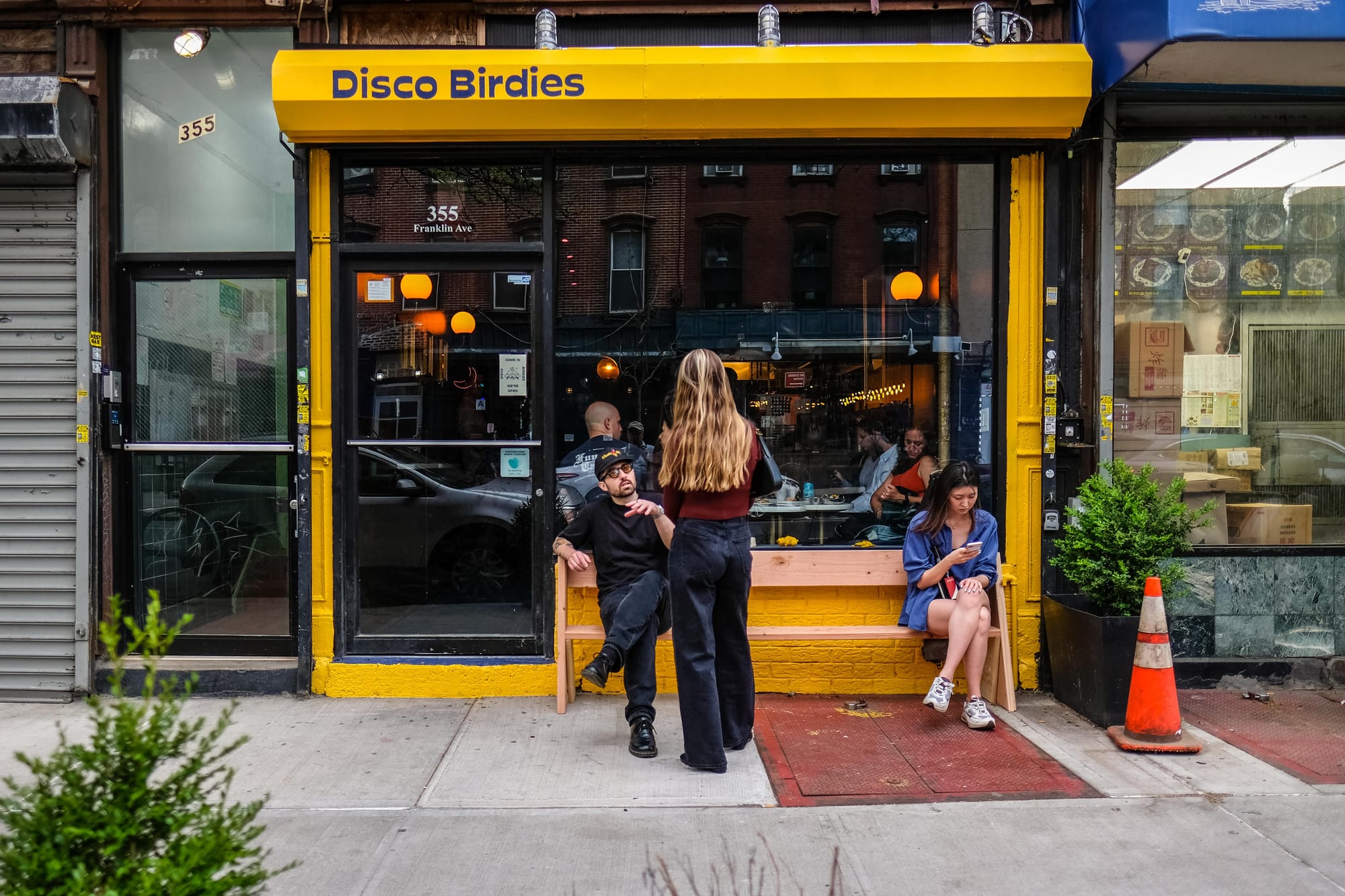 For non-locals, here's the Diaz rundown: He opened For All Things Good, the Mexican house-milled masa place, during summer 2020. Then Bar Birba, an Italian pizza-and-wine bar, followed three years later right across the street. He launched Disco Bottles, a wine store a few doors down from Birba, early this year; and as of last weekend, the block is now home to Disco Birdies, a buzzy counter service spot specializing in French fries, fried chicken, and bottles of champagne.
