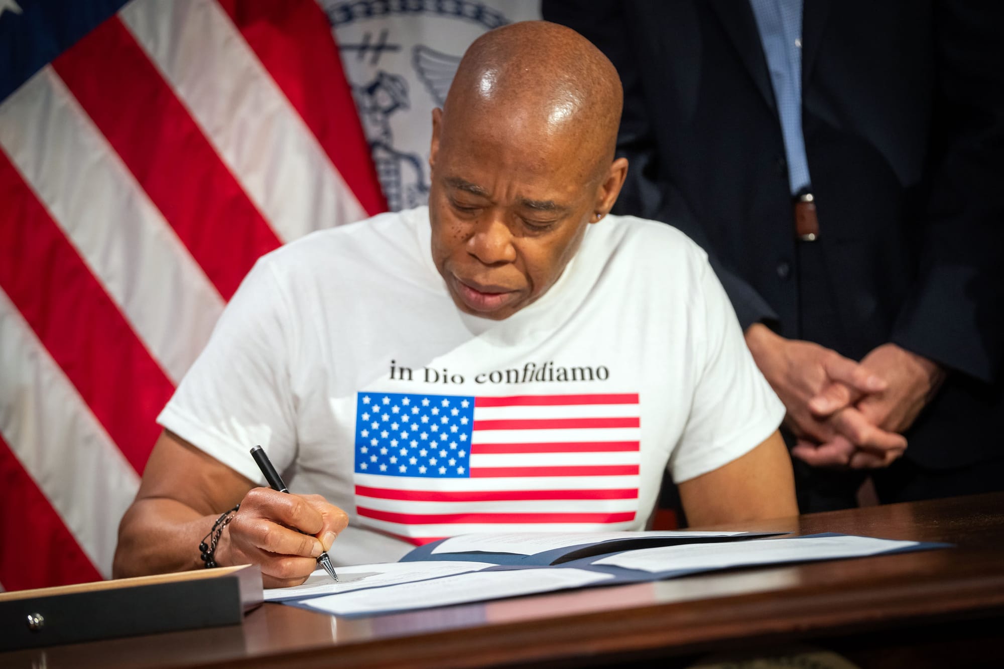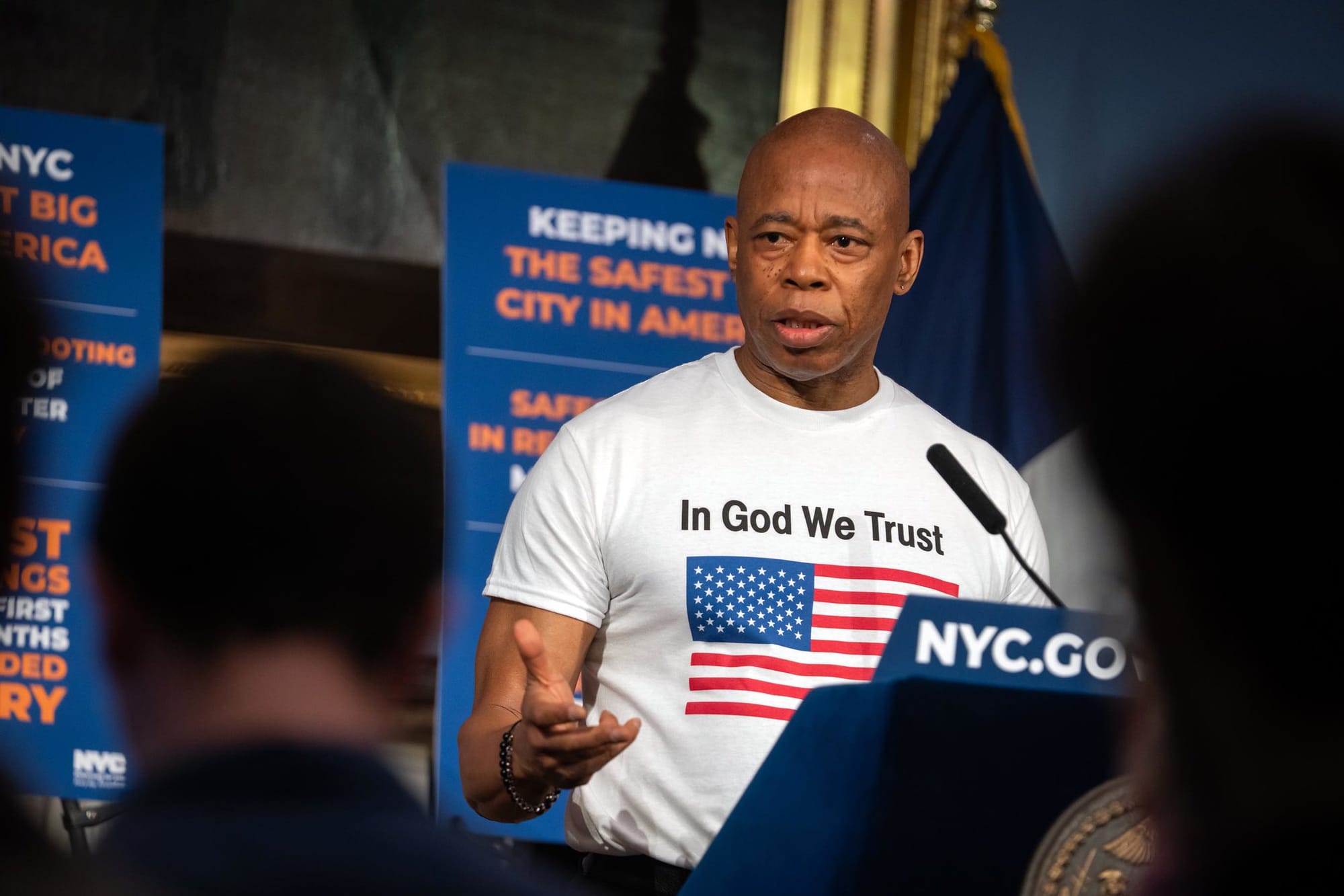 It all started with a graphic tee. In early April, the mayor showed up at City Hall wearing a simple white t-shirt with "In God We Trust" and an American flag on it tucked into his slacks.