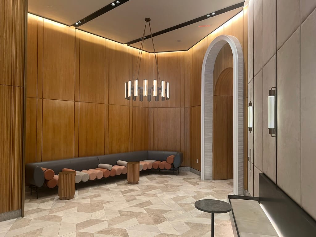 As I'm waiting for my tour of studio 19J (net rent of $3,500, once you factor in a "free" month and a half), a mildly preppy guy who looked to be in his 30s wearing shorts, sneakers, and a baseball cap—a tenant in one of the rentals that make up the lower half of the tower's housing stock, I imagined, or perhaps a condo owner near the top—comes down to the lobby just to chat with the cheery doorman and the janitor mopping the greige tiles.